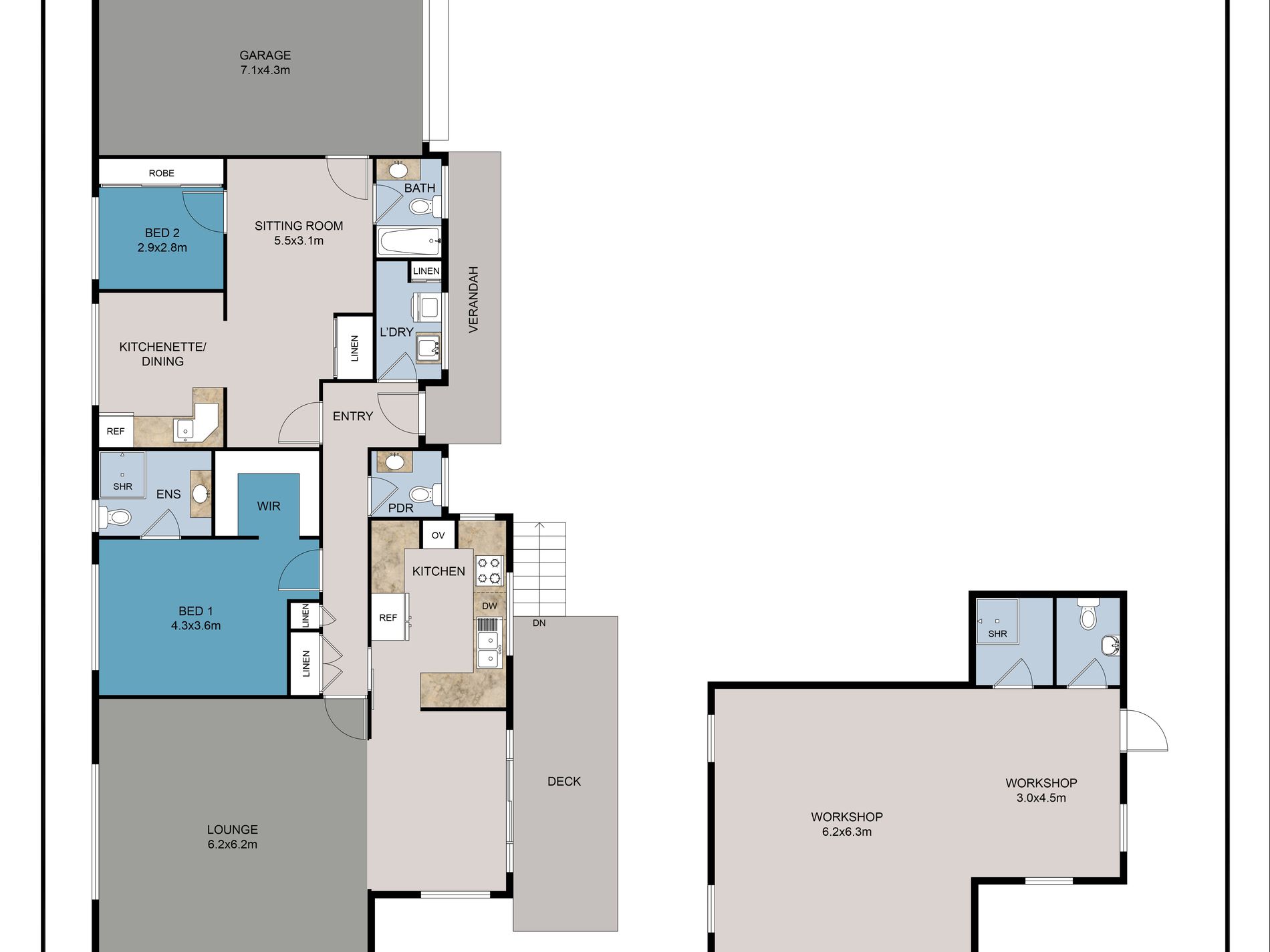 With a versatile layout featuring a 1 bedroom self contained area plus a huge, light filled open living space with views to the north along the coast and a generous main bedroom with walk in robe and ensuite, this home would suit retirees, multi-generational living or with some minor alterations to create a third bedroom, a small family.