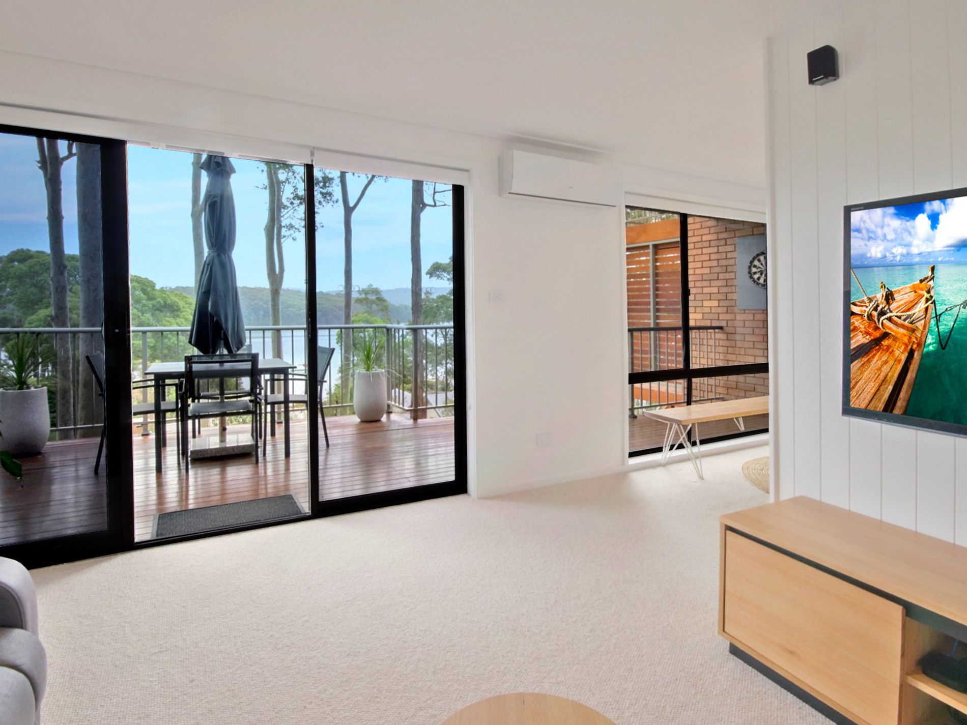 Upstairs, you will find the main bathroom, a versatile study area that is ideal for working from home and two well-sized bedrooms. Both bedrooms feature built-in robes, brand new carpet, and open onto a private deck where you can soak up even more of the beautiful water views.