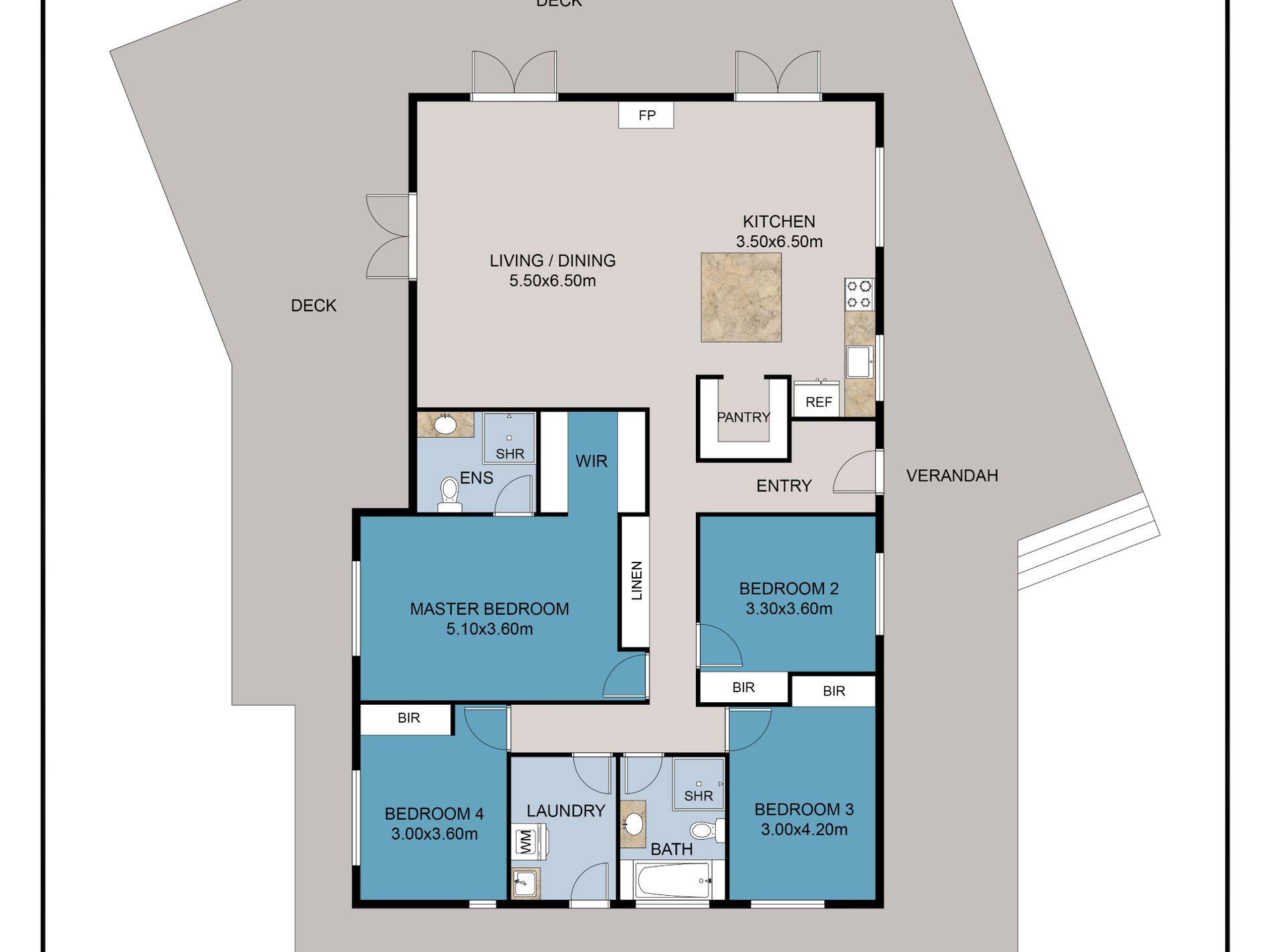 • 4 generous bedrooms and 2 bathrooms (master with ensuite and main with bath)