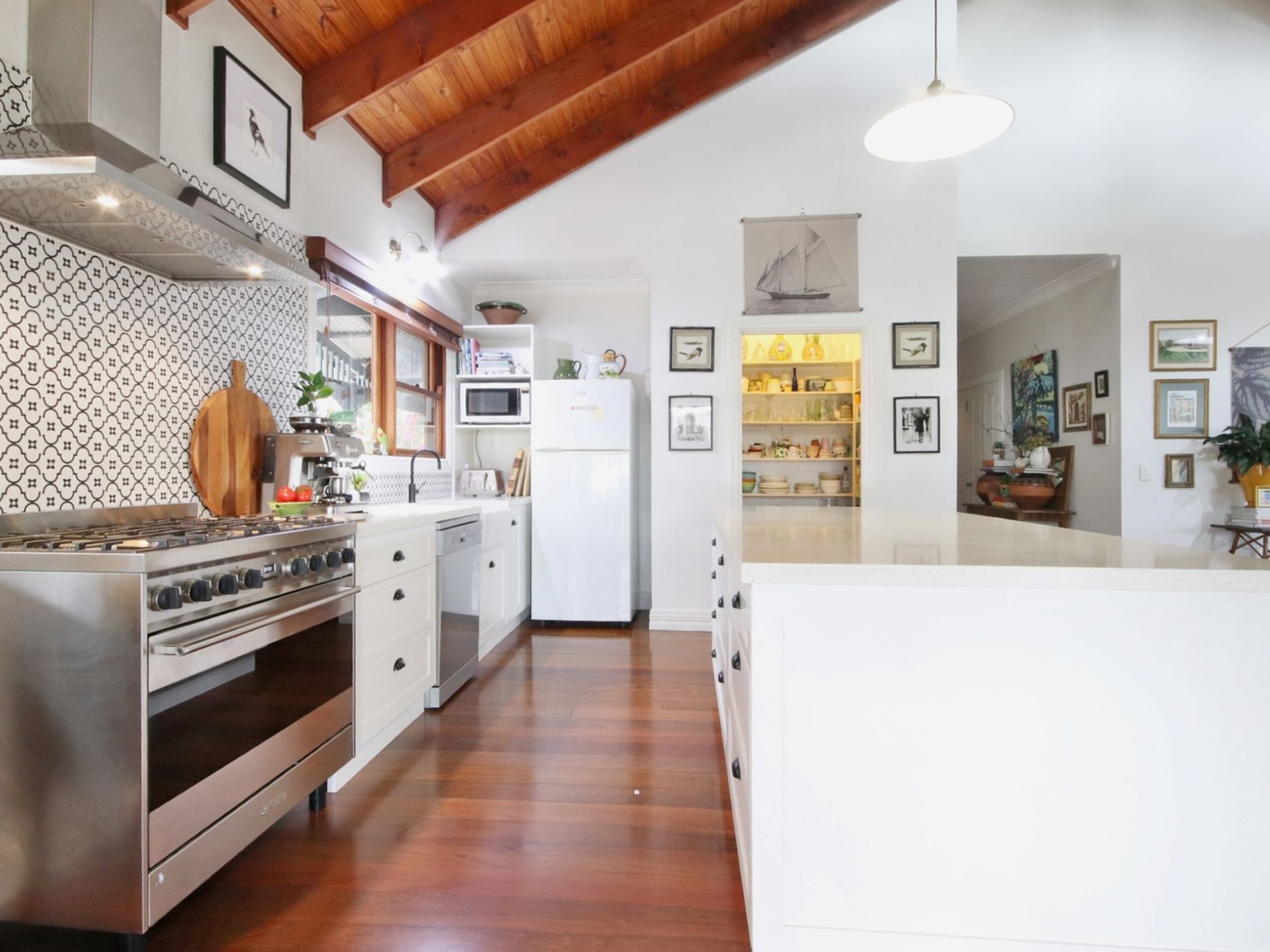 • A chef-inspired kitchen featuring stone benchtops, soft-close cabinetry, and Smeg appliances including 900 mm stainless steel cooking, rangehood, and dishwasher