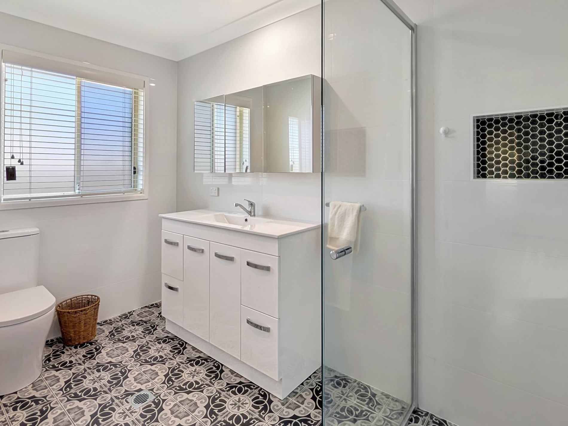 The king-sized main bedroom features a walk-in robe and ensuite, while the two guest bedrooms include built-in wardrobes and easy access to the main bathroom.