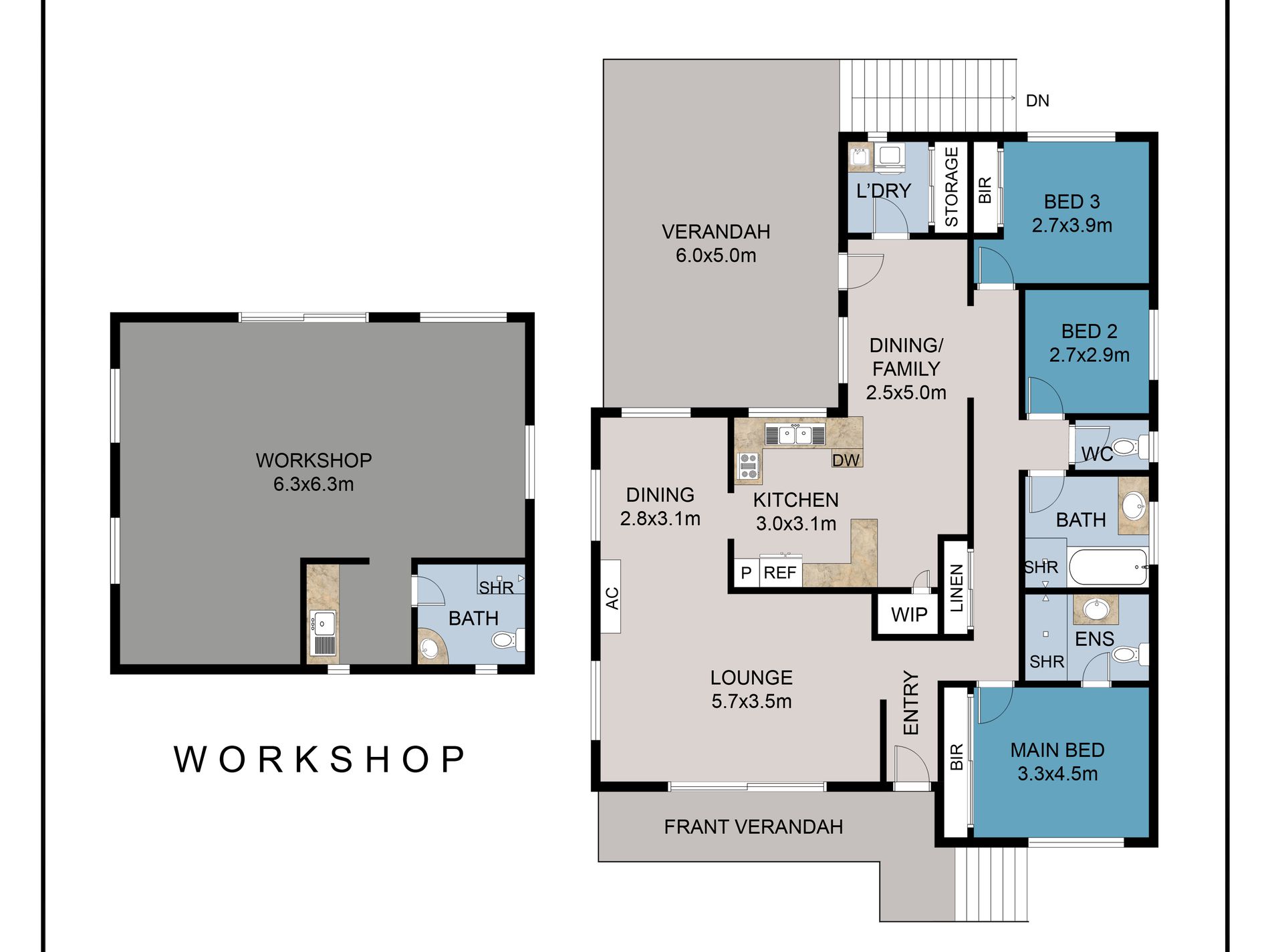 A separate studio in the backyard adds extra flexibility and includes its own bathroom. This space is perfect for guests, a home office, or a hobby room.